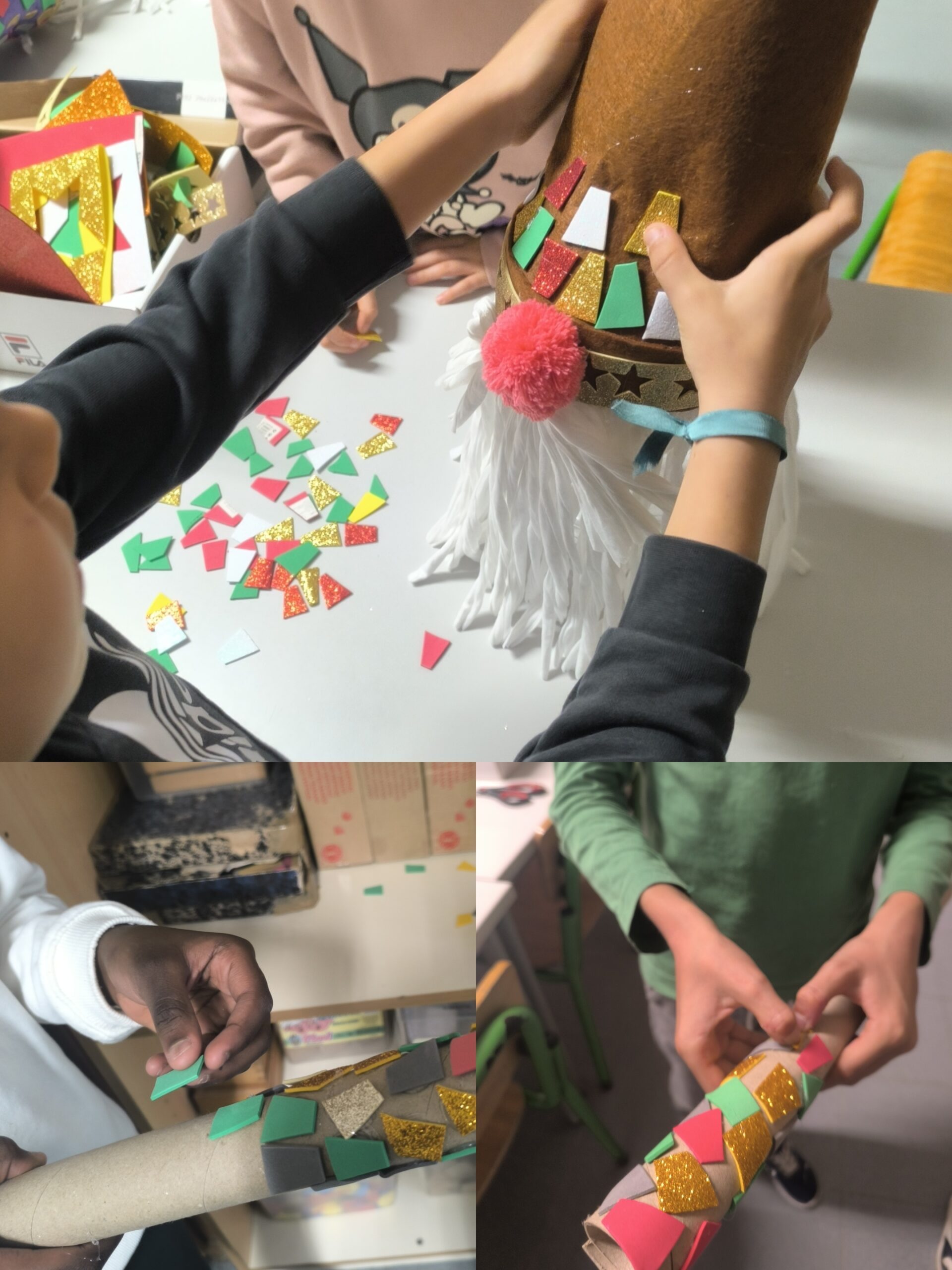 O projeto, desenvolvido em articulação entre os alunos do 2.º, 3.º e 4.º ano, inspirou-se no tema do Agrupamento para este ano: Antoni Gaudí. Utilizando a técnica do trencadís, os alunos aplicaram pequenos pedaços de feltro nos gnomos, recriando o efeito dos fragmentos de cerâmica do artista catalão e transformando materiais reutilizados em verdadeiras peças de arte.