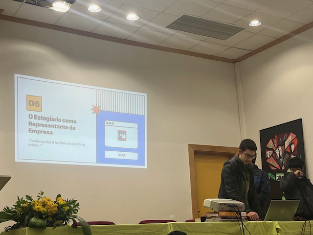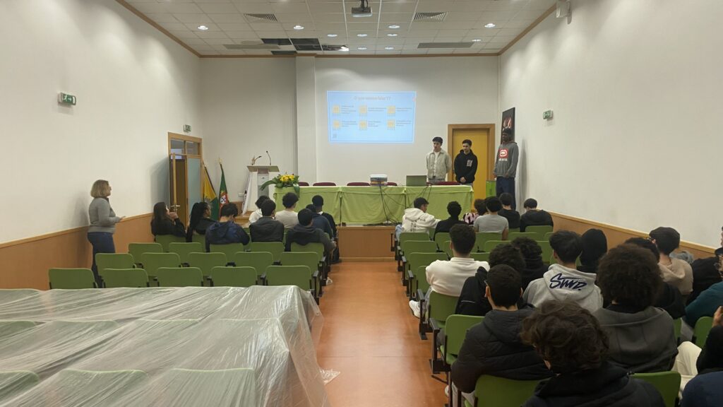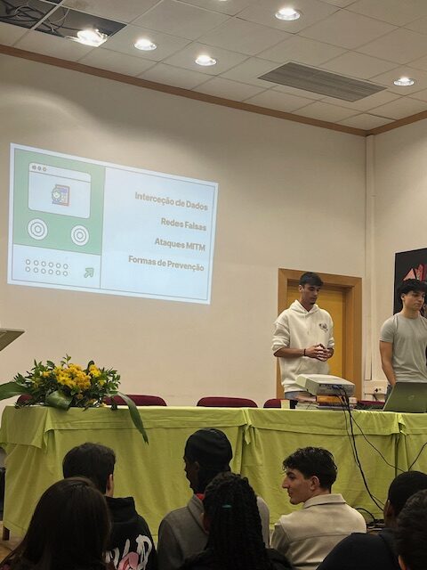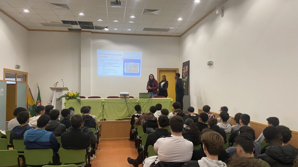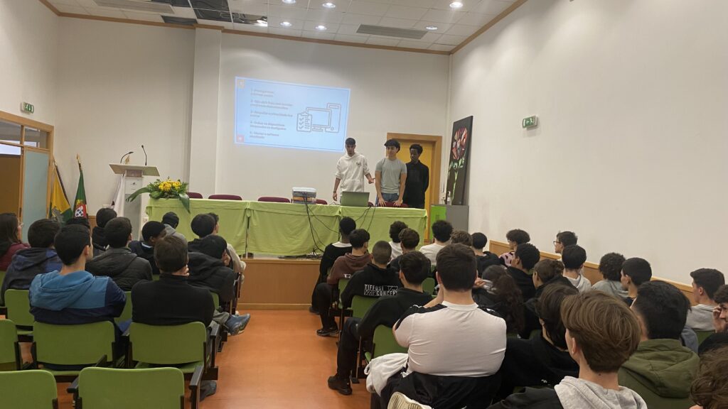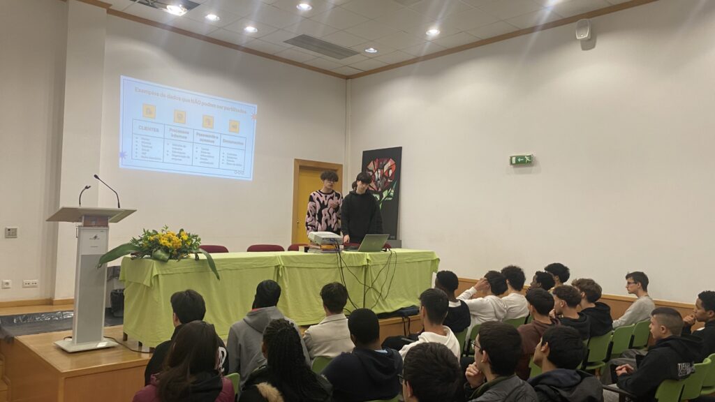 Ao longo da sessão, foram abordados temas como a proteção de dados, a utilização segura do e-mail e dos equipamentos da empresa, a confidencialidade da informação e a importância da imagem profissional nas redes sociais. A iniciativa assentou numa abordagem prática e de aprendizagem entre pares, permitindo aos alunos partilhar conhecimentos e exemplos reais com os colegas.