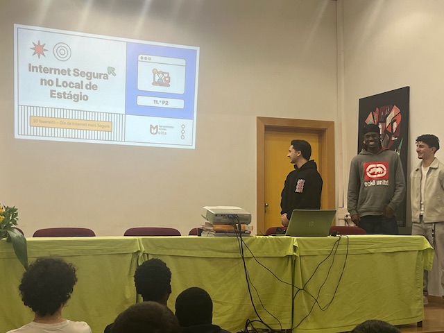No âmbito da comemoração do Dia da Internet Mais Segura, os alunos do 11.º ano do curso de Técnico de Gestão e Programação de Sistemas Informáticos (11P2) dinamizaram uma atividade de sensibilização sobre segurança digital em contexto de estágio profissional, dirigida às turmas do 11.º e 12.º ano do ensino profissional.